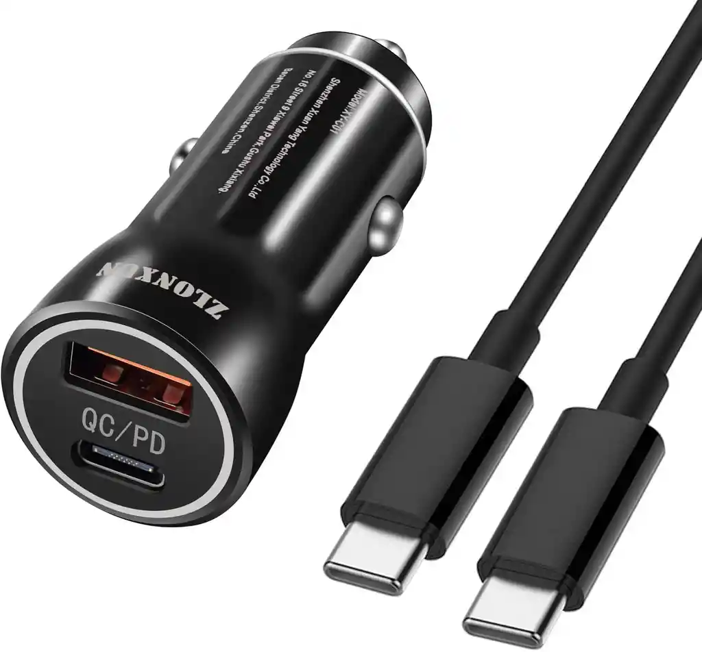 Carga rápida adaptable Este es un cargador de coche de salida de doble puerto que combina USB C y USB A. El puerto USB C proporciona una salida PD de 20 W de alta velocidad, y el puerto USB A proporciona una salida de alta velocidad de 18 W, lo que puede proporcionar a tus dispositivos un total de 38 W. Carga rápidamente hasta 4 veces más rápido que el cargador tradicional. Doble configuración de energía cinética, puede cargar rápidamente dos dispositivos al mismo tiempo, satisface la carga de todos los teléfonos móviles, verdadera carga doble rápida. Compatibilidad (Lista Parcial) Cargador rápido para coche compatible con Samsung S22/S22 Ultra/S21/S21+/S21 FE/S20/S20+/S20 FE/S10/S10e/S10+/S9/S9+/S8/Plus/A71/A50/A90/A80, LG G7/G6/V6. 20/V3 0, Google Pixel 6/6 Pro/5a/5/4a/4/4 XL/3a/3 XL, Moto G6 Plus/G6/G7/G7 Power/G7 Play/G7 Plus/X4, etc Protección sin preocupaciones: Las protecciones integradas protegen tus dispositivos contra el exceso de corriente, sobrecalentamiento y sobrecarga. El cargador de coche USB C detendrá automáticamente la carga cuando la batería esté llena. Ajuste seguro: diseñado para adaptarse a casi cualquier vehículo de 12 V/24 V y compatible con dispositivos Quick Charge 2.0/1.0, compatible con la mayoría de dispositivos alimentados por USB. Contenido del paquete: cargador rápido de coche de doble puerto de 38 W + cable tipo C a C de 1 Metro.