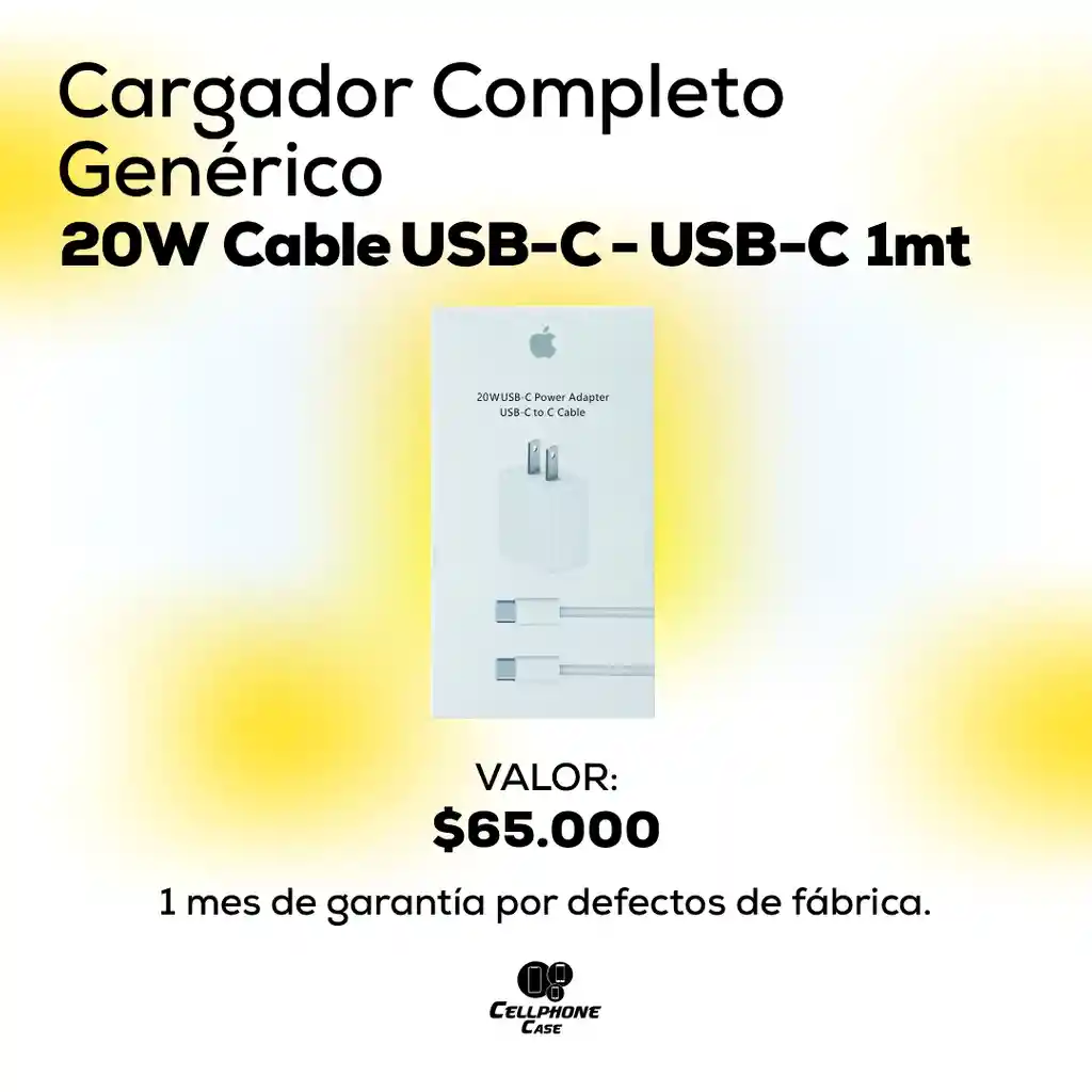PRODUCTO GENÉRICO Cargador Completo 20W + Cable USB-C - USB-C1 Metro.