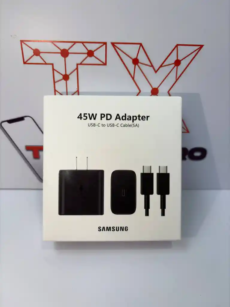 ⚡ ¡Recarga al máximo tus dispositivos! 🔋 ✨ Cargador con Cable Samsung 45W USB-C a USB-C La potencia que tu Galaxy merece 💪. Diseñado para una carga rápida y segura, este adaptador de 45W te acompaña a donde vayas sin perder energía. ✅ Carga rápida con potencia de 45W ⚡ ✅ Compatible con smartphones, tablets y dispositivos USB-C 🔌 ✅ Eficiencia energética: consumo en espera menor a 5 mW ♻️ ✅ Tecnología Smart IC que protege contra sobrecarga y sobrecalentamiento 🔒 ✅ Diseño compacto y duradero, ideal para viajes ✈️ 💡 Modo de uso: Conecta el adaptador al tomacorriente y el cable USB-C a tu dispositivo. ¡Listo! Energía total en minutos. 📦 Incluye: Adaptador de corriente 45W + cable USB-C a USB-C original. 🔥 Ideal para: quienes exigen velocidad, seguridad y potencia en cada carga.