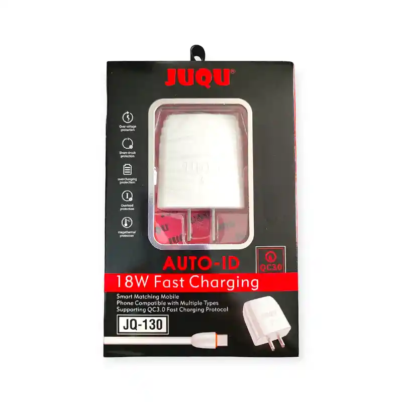 Cargador Completo Tipo C 18w Carga Rápida Marca: Juqu Color disponible blanco. Compatible con: Samsung, Nokia, Sony, Motorola, Rokit, Alcatel. Somos Andicell Soluciones