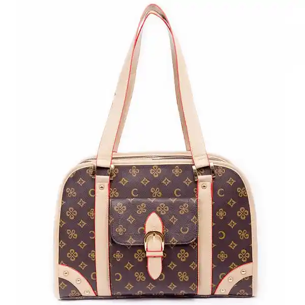 cargador en Cuero Sintético con elegantes acabados en herrajes dorados y forro interior en Satin animal print Disponible en color café. Tamaño: 41 cms de ancho x 29 cms de alto x 19 cms de fondo