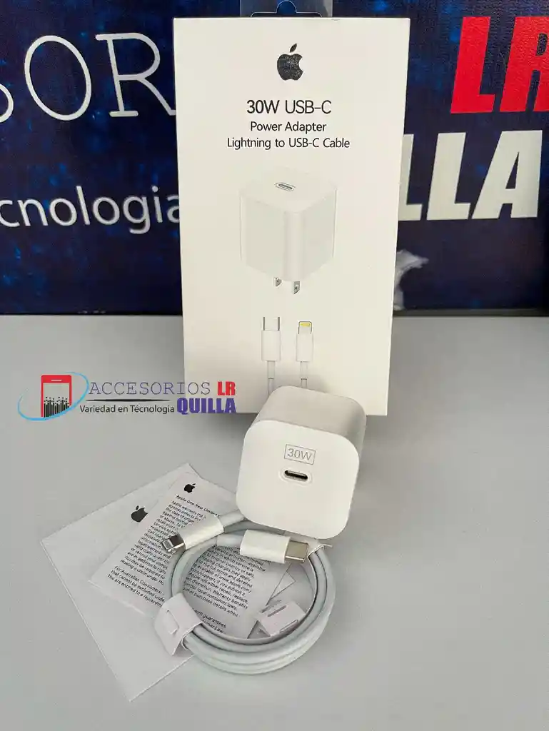 CARGADOR 30W USB TIPO C A LIGHTNING Equipado con un puerto USB tipo C, el cargador te proporciona una potencia máxima de salida de 30W para cargar rápidamente tu teléfono. Carga rápida de seguridad superior: coincide con el estándar de seguridad UL para evitar sobrecarga, corriente corta y sobrecalentamiento. La salida continua de alta potencia tendrá un aumento de temperatura, pero todos están dentro de los límites de seguridad de la certificación estándar. Adaptador universal de cargador de teléfono tipo C: carga súper alta velocidad para iPhone 14, 14 pro, 14 pro max, 13, 13 Pro, Pro Max, 13 Mini, iPhone 12, 12 Pro, 12 Pro Max, 12 Mini, 11 Pro, 11, XR, XS MAX, X. Cargador de pared ligero, elegante, pequeño y compacto que hace que sea fácil conectar y cargar tu dispositivo. Fácil de transportar y la mejor opción para viajar. ESPECIFICACIONES: Salida Carga Rápida de 30W Cable de USB-C A Lightning de 1 Metro. Cable de Alta Resistencia. ✅Nuestros productos antes de ser enviados son probados ✅Para la garantía el producto debe mantener sus sellos y no cubre daños ocasionados por el comprador ✅La factura de compra será enviada a su correo electronico