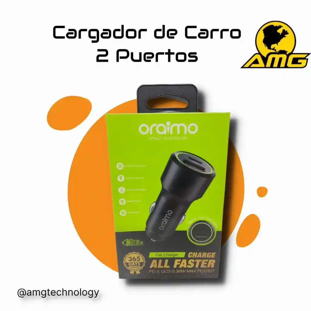 Conector: USB dual. Entrada: CC 12~24 V. Salida USB-A: CC 5 V-2,4 A, 9 V-2 A, 12 V-1,5 A. Salida tipo C: CC 5 V-2,4 A, 9 V-2 A, 12 V-1,5 UNA. Compre el cargador de coche de carga rápida oraimo Bullet al mejor precio en línea recíbalo en la puerta de su casa. Carga más rápido: Pon tu carga a toda velocidad con oraimo Bullet PD. El puerto PD detecta de manera inteligente los dispositivos conectados para brindar una carga optimizada. Poder para todos: Un puerto tipo C carga los últimos teléfonos y tabletas. Para mayor comodidad, utilice el puerto USB estándar para cargar simultáneamente otro dispositivo móvil. Diseño de primera calidad: El tamaño compacto asegura que no abarrote su tablero. Un exterior de aleación de aluminio elegante y brillante que es completamente resistente a los rayones y combina con su automóvil. Indicador LED inteligente: El anillo de luz LED suave le permite encontrar sus puertos cuando conduce de noche. Inteligentemente, la luz se vuelve más brillante automáticamente cuando detecta una velocidad de carga más rápida. Sistema de seguridad multiprotección: La tecnología de seguridad exclusiva de Alaimo brinda protección contra sobretensiones, control de temperatura y funciones más avanzadas para garantizar una protección total para su automóvil y dispositivos favoritos. 📦Pídelo ahora mismo y te lo llevamos hasta la puerta de tu casa📦 🛒@amgtechnology 🚚Envíos 100% Seguros 📦