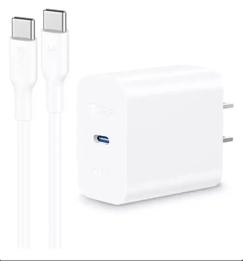 Cargador de pared 20W Tipo C con carga rápida. Ideal para iPhone, Samsung y equipos Android. Diseño compacto y seguro.