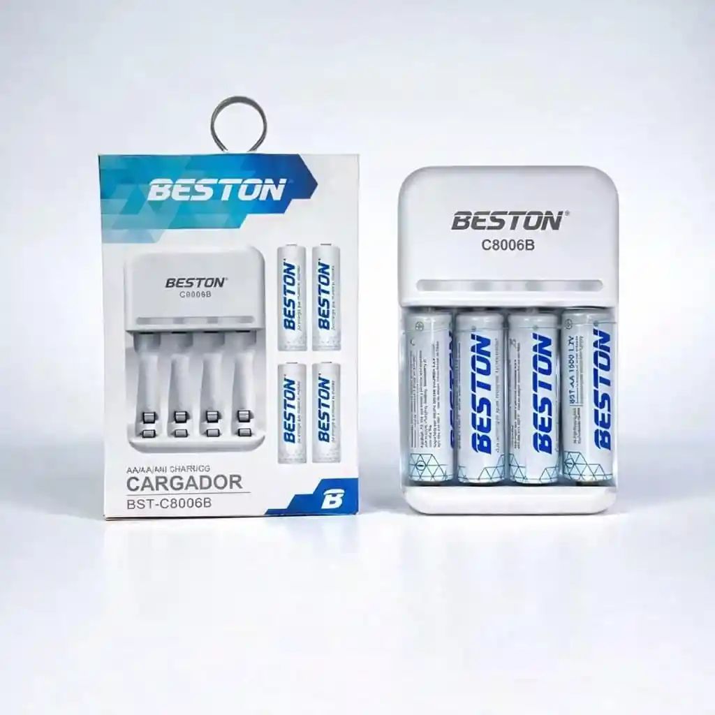 Descripción: ✓Ahorra dinero y energía con baterías recargables de alto rendimiento El cargador BESTON C8006B incluye 4 baterías AA recargables de 1500mAh, ideal para uso diario en controles, juguetes, cámaras y más. Características principales: ✔️ Incluye 4 baterías AA recargables de 1500mAh ✔️ Cargador con capacidad para AA y AAA ✔️ Conexión USB (fácil de usar en múltiples dispositivos) ✔️ Indicador de carga LED ✔️ Diseño compacto y portátil ✔️ Ideal para uso en hogar, oficina o viajes