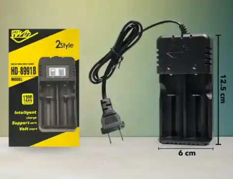 ¡Optimiza la carga de tus baterías! pilas AA Y pilas AAA Perfecto para tener siempre disponible linternas, equipos tácticos, dispositivos electrónicos y más. • Doble ranura: carga simultánea para dos baterías. • Carga inteligente: detecta y regula automáticamente el voltaje para proteger tus baterías. • Tecnología “Volt Start”: arranque seguro y estable desde el primer uso. • Cable eléctrico: listo para conectar y usar. • Con caja de presentación, ideal para almacenar o exhibir.