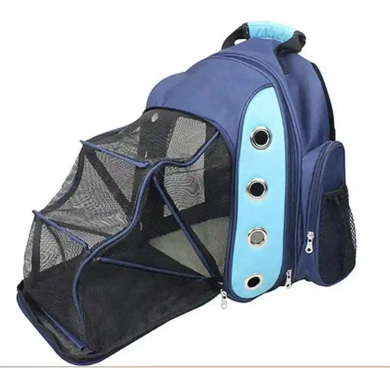 Mochila expandible para mascotas Es un cargador perfecto para que tus viajes y paseos con tu mejor amigo sean mucho más prácticos, confortables y felices. El morral está hecho en tela y malla de alta calidad y resistencia para una máxima duración. Tiene un tamaño mediano y es perfecto para transportar gatos o perros pequeños de hasta 6 kg de peso. Cuenta con: Base firme para mayor estabilidad Cierres que extienden el bolso, lo que lo hace más amplio y cómodo Malla transpirable que permite una buena ventilación Puerta lateral para que tu mascota entre y salga sin complicaciones Bolsillo lateral práctico para guardar objetos de primera necesidad Cargaderas graduables a tu gusto Asa superior Medidas aproximadas Alto: 40 cm Largo: 35 cm Ancho 15 cm Ancho al desplegarse: 40 DISPONIBLE COLOR AZUL Y VERDE
