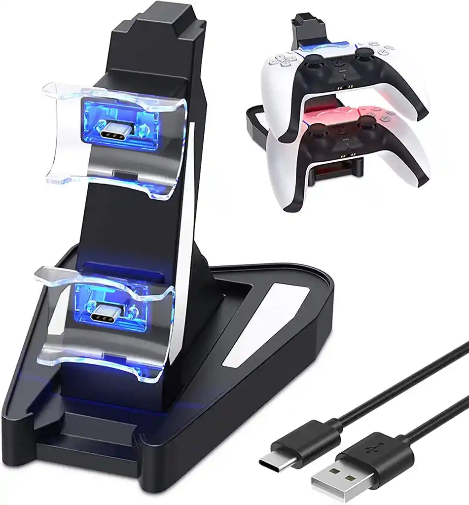 ::::::::VISION FAITH TECHNOLOGY:::::::: Chip inteligente: Chip de protección inteligente integrado y componentes de alta calidad, no necesitas preocuparte por problemas de seguridad como sobrecarga/sobretensión, y cuida de tu controlador PS5 Compacto y ahorra espacio: Este cargador dual de controlador PS5 proporciona una manera conveniente de cargar y almacenar el controlador PS5, ahorrando espacio cuando no juegas y manteniendo la zona de juego ordenada Carga rápida y segura: Con 2 puertos USB C integrados y un cable de carga, puedes almacenar y cargar de forma segura dos controladores PS5 al mismo tiempo. Un controlador solo necesita 2 horas. Dos controladores de 4 horas Indicador de carga LED: Un indicador LED único de dos colores muestra el estado de carga. La luz roja está cargando y la luz azul está completamente cargada, te indica el estado de carga de un vistazo El mejor regalo: Un cargador especialmente diseñado para el controlador de PS5, que aporta más comodidad y diversión a tus juegos. Es el mejor regalo para los amantes de la PS5 CARACTERISTICAS Especialmente diseñado para controlador PS5, estilo elegante Chip de protección de seguridad inteligente, carga rápida Indicador de carga LED, el estado de carga es claro de un vistazo. Diseño antideslizante en la parte inferior, soporte estable. Equipado con un cable de carga para ahorrar más dinero. Conectar a la consola a través de puerto tipo C de alta velocidad y cable USB tipo C. LAMPARA INDICADOR Indicador LED único de dos colores muestra estado de carga -Carga: rojo -Completamente cargado: azul (Utilice la fuente de alimentación de 5 V/2 A para garantizar una carga rápida) INSTALACION 1. Sujete el soporte para centrarse en la base de la instalación. 2. Pon el orificio del controlador PS5 para centrarse en el pasador de carga; 3. Sostenga la base y el controlador, inserción inclinada hacia abajo; 4. Listo para cargar tu controlador. El paquete incluye: 1 base de carga. 1 soporte de carga. 1 cable de carga USB. --------------------------------------------- SÍ ELIGES COMPRAR CON NOSOTROS OBTIENES: -SOPORTE Y ASESORÍA CON TU COMPRA. -90 DÍAS DE GARANTÍA POR FALLAS DEL SISTEMA O PROBLEMAS DE FABRICA (CAMBIO INMEDIATO). -RAPIDEZ DE ENVÍO DEBIDO A QUE TODOS NUESTROS PRODUCTOS ESTÁN DISPONIBLES PARA ENVÍO INMEDIATO.