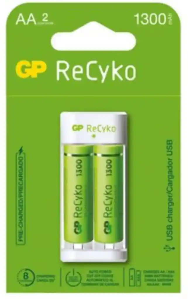 Cargador con pilas recargables ideales para cargar pilas AA y un par de pilas AA que tiene muchos usos prácticos.