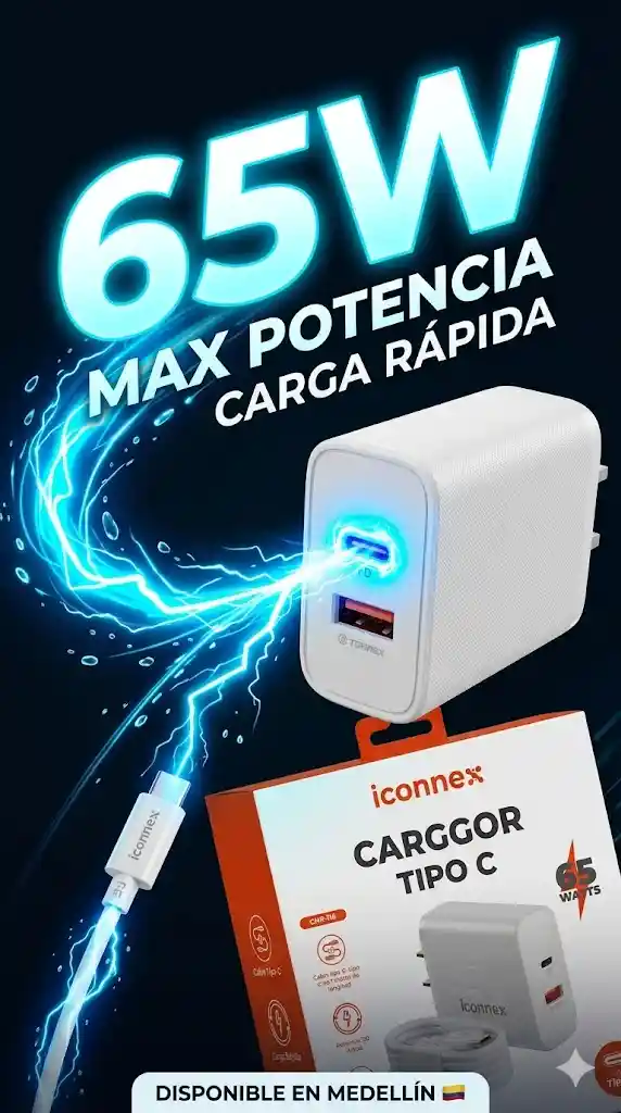 🔥 ¡La Bestia de Carga ha Llegado: Cargador Iconnex Dual 65W Max Potencia! ⚡🚀 ¿Cansado de cargar tu laptop con ese ladrillo pesado o de que tu celular tarde horas en subir un 10%? Dile adiós a la lentitud. Te presentamos el Cargador Iconnex CHR-116, una verdadera estación de energía compacta. Con sus impresionantes 65 Watts de potencia y tecnología GaN, carga tu laptop, tablet y smartphone a máxima velocidad, ¡todo al mismo tiempo! ¿Cómo funciona? 🧐 Este no es un cargador común es pura inteligencia energética: Poder Dual (USB-C + USB-A): Puerto Tipo-C: Entrega hasta 65W Max. Perfecto para MacBook Air/Pro, Laptops con carga USB-C, Nintendo Switch o los celulares más potentes (PD/QC/PPS). Puerto USB-A: Entrega hasta 20W Max. Ideal para cargar rápido tu iPhone, Android o accesorios sin que el cargador se caliente. Carga Inteligente: Distribuye la potencia de forma automática. Si usas ambos puertos, se ajusta para que la laptop cargue a 45W y el celular a 20W, protegiendo tus baterías. Tecnología Power Delivery (PD) & GaN: Más pequeño, más eficiente y genera menos calor, ofreciendo una carga ultra estable y segura. Lo que lo hace único: 65 Watts Reales: Potencia de sobra para alimentar tu oficina móvil o estación de juego. Diseño GaN Ultra Compacto: Llévalo en tu bolsillo es un 50% más pequeño que los cargadores originales de laptop. Entrada Universal (Bivolt): Funciona perfecto entre 100V-240V, ideal para tus viajes por todo el mundo. Cable 1m Incluido: Viene listo para usar con un cable Tipo-C a Tipo-C de alta resistencia y gran conductividad. Seguridad Multi-Capa: Protección integrada contra sobrecorriente, sobretensión y cortocircuitos. 📍 Disponible para entrega inmediata en Medellín. ¡Actualiza tu energía, pide la tuya hoy #CargadorIconnex #CargaRapida65W #TecnologiaMedellin #AccesoriosLaptop #IconnexCHR116 #USBCTypeC #GaNTechnology #MacBookMedellin #AndroidColombia #GadgetsMedellin #VentasAntioquia #PoderMovil cargador iconnex 65w dual port, cargador tipo c a tipo c para laptop medellin, carga ultra rapida 65 watts, iconnex chr-116 gan tech, cargador pd qcpps inteligente, cable tipo c a tipo c 1 metro, accesorios para macbook medellin, cargador gan de bolsillo, tecnologia gan power delivery, cargador dual usb-c usb-a 65w, repuestos laptops computadores medellin, combo cargador y cable usb-c de alta potencia, cargador iconnex original 65w, tienda tecnologia medellin online, carga rapida gan bivolt, adaptador de corriente para laptop medellin