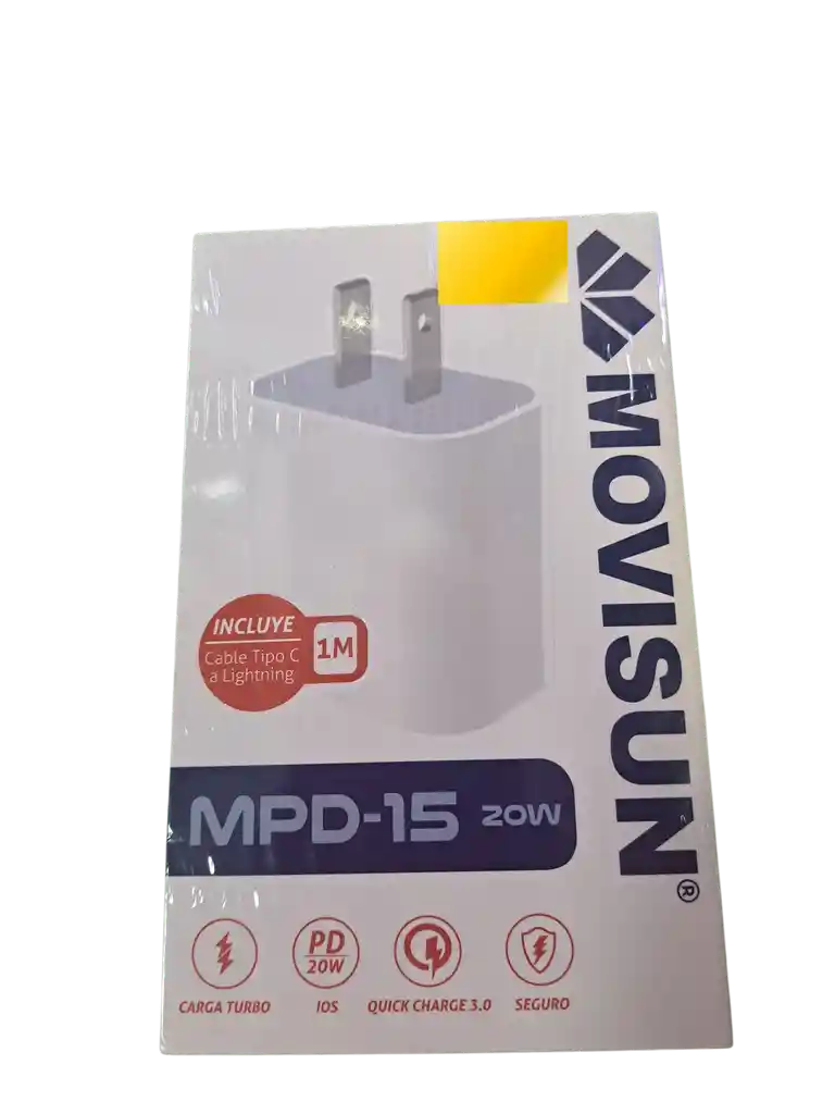 Cargador con cable C/Lightninig de 20W, Carga Turbo, PW/20W IOS, con tecnología QUICK CHARGE 3.0. Entrada: AC100-240V 50/30Hz 0.5A, Salida: DC5V-3A; 9V-2.22A. Ideal para todos los modelos de IPhone con puerto de carga Lightninig.