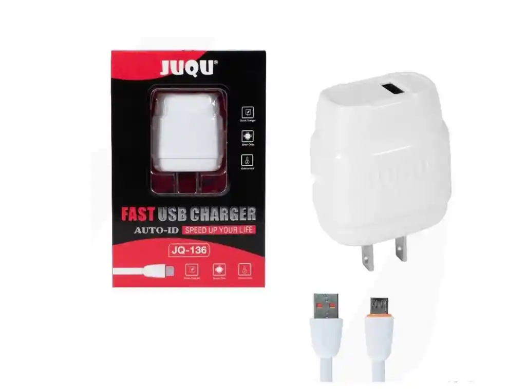 cargador JUQU JQ-125 para iPhone un accesorio de carga rápida con potencia de 18W o 20W (dependiendo la versión), puerto USB-C o USB-A (el cable es USB-A a Lightning para iPhone), compatible con voltaje universal (100-240V) y que ofrece salida adaptable (5V/3A, 9V/2A), diseñado para cargar eficientemente modelos de iPhone compatibles con Power Delivery (PD) y estándares USB-PD, siendo una opción versátil y compacta. Características principales: Potencia: Generalmente de 18W o 20W, ideal para carga rápida en iPhones. Conexión: Suele incluir un cubo con puerto USB-C y un cable USB-A a Lightning (para iPhone) o USB-C a USB-C en otros modelos JUQU. Voltaje de entrada: Universal (100-240V), apto para viajes. Voltaje de salida: Se adapta a las necesidades del dispositivo, ofreciendo perfiles como 5V/3A, 9V/2A, etc.. Tecnología: Soporta Power Delivery (PD) para carga rápida.