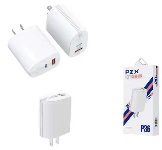 • Cargador Celular PZX • Cargador con entrada PD+USB + Cable • Iphone x i11 i12 • Entrada: AC100-240V/ 0.3A salida 5amp max compatible con iphone compatible con QC 5.0 Potencia 20w color blanco