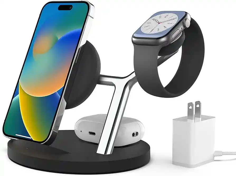El doble de potencia de carga: nuestra almohadilla de carga rápida para Samsung y iPhone te permite cargar dos dispositivos a la vez a velocidades aún más rápidas. Simplemente coloca tu teléfono para una carga rápida y recoge cuando estés listo para usar. No necesita cables. Habla de encender con facilidad Carga rápida, más duradera: conoce el mejor cargador inalámbrico para una carga más rápida. Equipado con tecnología Qi universal, esta estación de carga inalámbrica te permite ir inalámbrico para que puedas ver tus programas favoritos o hacer planes a través de texto sin perder el ritmo. Notificación de batería baja no incluida Hecho para la forma en que vives: deja tu funda de teléfono puesta y deja que tu estilo personal brille durante una carga rápida. A diferencia de otros cargadores inalámbricos, esta almohadilla de carga para Samsung y iPhone es convenientemente compatible con la mayoría de las fundas de teléfono para ayudarte a maximizar tu tiempo