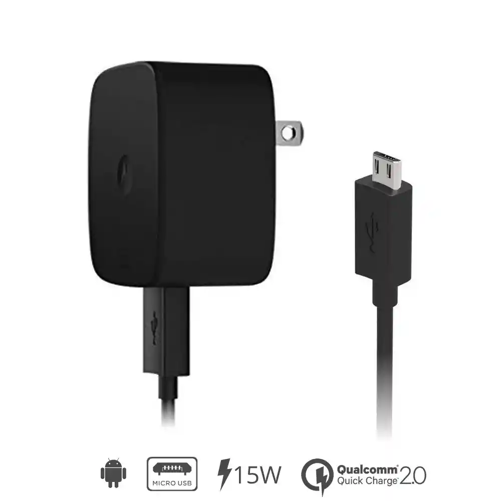 Cargador Motorola Turbo Power Usb A Micro Proporciona horas de energía con solo unos minutos de carga.* Compatible con cualquier dispositivo Android™ QuickCharge™ 2.0. Incluye un cable de carga micro-USB desmontable. Compatibilidad: Motorola Droid Turbo, Turbo 2, Ultra, Moto g4, Moto x, Samsung Galaxy, LG, HTC, Sony, Nexus, OnePlus, Huawei, BLU, ZTE, Acer, dispositivos Qualcomm Quick Charge 2.0, teléfonos inteligentes, tabletas, cámaras digitales y otros dispositivos con USB único y micro USB.