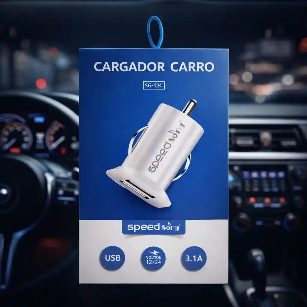 Mantén tus dispositivos siempre cargados mientras conduces con el Cargador para Carro Speed Song SG-12C. Diseñado para ofrecer carga rápida y estable, cuenta con doble puerto USB y salida total de 3.1 amperios, ideal para smartphones, tablets, GPS y otros dispositivos electrónicos. Compatible con vehículos de 12V y 24V, funciona perfectamente en automóviles particulares, camionetas y camiones. Su diseño compacto y elegante en color negro combina con cualquier interior de vehículo. Características principales: Modelo: SG-12C Salida total: 3.1A Doble puerto USB Compatible con voltaje 12V / 24V Carga simultánea de dos dispositivos Diseño compacto y resistente Instalación inmediata (conectar y usar) Ideal para viajes largos, uso diario o para quienes necesitan mantener sus dispositivos con energía en todo momento.