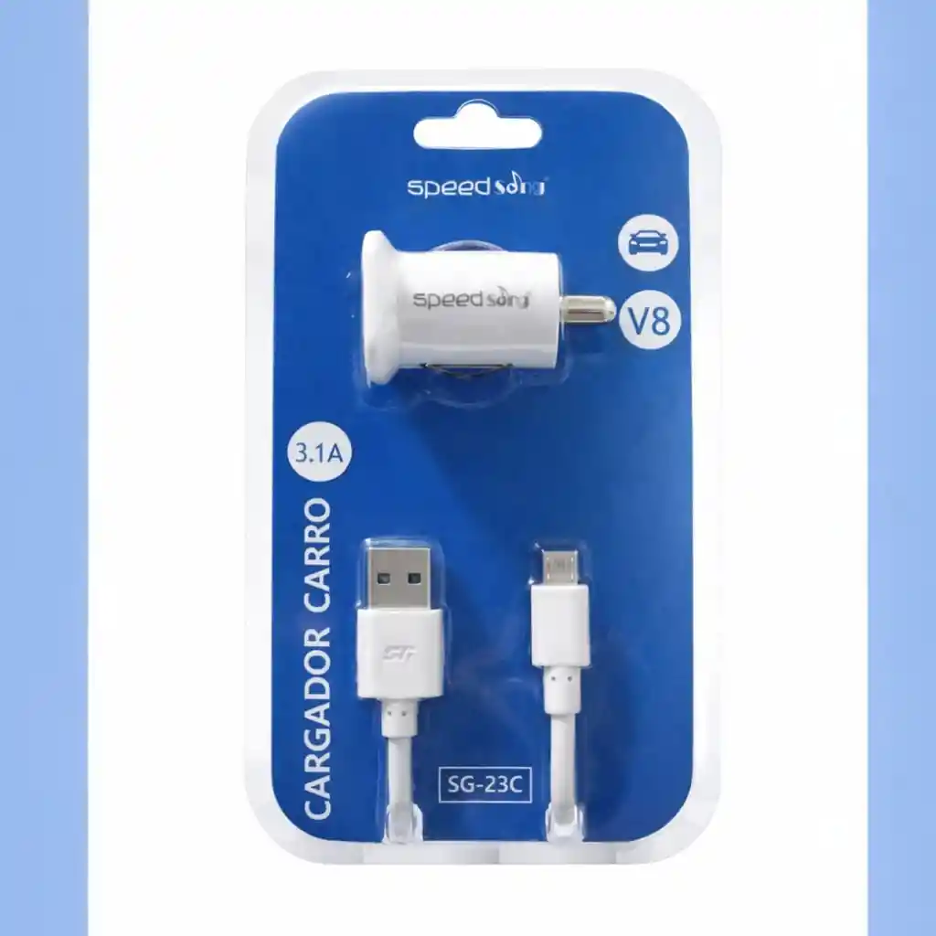 Mantén tu celular siempre cargado mientras conduces con el Cargador para Carro Speed Song SG-23C 3.1A, un kit completo que incluye cable Micro USB (V8) para mayor comodidad. Diseñado para ofrecer carga rápida y estable, cuenta con salida de 3.1 amperios y es compatible con vehículos de 12V y 24V, ideal para automóviles particulares, camionetas y camiones. Su diseño compacto en color blanco combina perfectamente con cualquier interior de vehículo y permite una conexión práctica y segura. Características principales: •Modelo: SG-23C •Salida: 3.1A •Incluye cable V8 •(Micro USB) •Compatible con 12V / 24V •Ideal para Android y dispositivos •Micro USB •Diseño compacto y resistente •Conexión inmediata (plug and play) •Ideal para uso diario, viajes largos y mantener tu dispositivo siempre con batería. •Color: Blanco