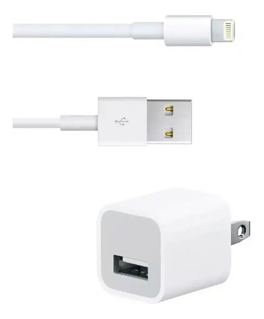 COMBO CARGADOR COMPATIBLE CON IPHONE 5W + CABLE LIGHTING 1 METRO Cable Lighting Este cable USB 2.0 conecta tu iPhone, iPad o iPod con conector Lightning al puerto USB de tu computadora para sincronizarlos y cargarlos. También puedes conectar tu dispositivo al adaptador de corriente USB de Apple para cargarlo desde una toma de corriente. Cargador Cubo 5W Este adaptador de corriente tiene un diseño ultracompacto que proporciona una carga rápida y eficiente. Lo puedes usar en casa, en la oficina o en cualquier otro lado. Funciona para cualquier modelo de Apple Watch, iPhone o iPod. ------------------------------ COMPATIBILIDAD -------------------------------------- Modelos de iPhone iPhone XS iPhone XS Max iPhone XR iPhone X iPhone 8 iPhone 8 Plus iPhone 7 iPhone 7 Plus iPhone 6s iPhone 6s Plus iPhone 6 iPhone 6 Plus iPhone SE iPhone 5s iPhone 5c iPhone 5 Modelos de iPad iPad mini 4 iPad mini 3 iPad mini 2