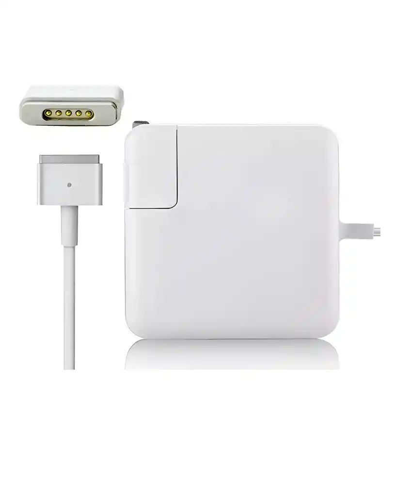 El cargador/adaptador MagSafe 2 de 60W (Modelo A1435) es un accesorio diseñado para MacBook Pro de 13 pulgadas con pantalla Retina (finales 2012-2015). Cuenta con un conector magnético tipo "T" que se desconecta fácilmente para evitar daños y un LED indicador (ámbar cargando, verde cargado).