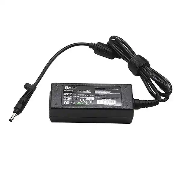 Voltaje Salida 19V; Amperaje: 1.75A Voltaje de entrada 100V-240V - 0,8A 50-60Hz Conector redondo mini: 4,0*1,0mm Punta Negra Protecciones OVP y SCP (contra sobre voltaje y cortocircuito) Cable de poder plano ultrarresistente de 1.5 mts Tipo Trébol Potencia de Salida / Watts: 33w Nuestros cargadores Jaltech de calidad Premium homologados para Mini Asus19v-1.75a garantizan el rendimiento y durabilidad que requiere un cargador de alta calidad. Incorpora un fusible que protege al equipo de sobrevoltaje y cortocircuito. Sin duda es la mejor elección para tener una excelente calidad Precio – Beneficio. Compatible con Portátiles Asus*: Asus Zenbook UX305 UX303LB UX303UA UX303UB UX305CA UX305FA UX305LA UX305UA Asus Zenbook Prime UX31A UX31LA UX32A U38 U38DT U38N UX21A UX301 UX301LA UX302 UX302LA UX303 UX303LA UX303LN UX32VD UX42VS UX52VS Asus X553M X553MA X553SA X540SA X540SA X540 X540LA X540SA 1015E F553MA K553MA Q302LA Q302UA Asus Taichi 21 Taichi 31 Taichi21-DH51 Taichi31-NS51T Asus Transformer Book Flip Trio T300 T300LA TP300 TP300LA TP300LD TX201 TX201LA Asus Chromebook C200 C200M C200MA C300 C300M C300MA Asus VivoBook E403SA F200CA F201E F202E K200MA Q200 Q200E S200 S200E X102B X102BA X200 X200CA X200LA X200MA X201 X201E X202 X202E Asus EeeBook E402MA E402SA E402MA-EH01-BL Asus Flip Q302L Q302LA-BBI5T14 Q302LA-BBI5T19 Q302LA-BHI3T09 Asus VivoBook Q200E Series Asus VivoBook Q200E-BHI3T45 Asus VivoBook F201E Series Asus VivoBook F201E-KX052H Asus VivoBook F201E-KX063H Asus VivoBook F201E-KX064H Asus VivoBook F201E-KX065H Asus VivoBook F201E-KX065DU Asus VivoBook F201E-KX066H Asus VivoBook F201E-KX066DU Asus VivoBook F201E-KX067H Asus VivoBook F201E-KX067DU Asus VivoBook F201E-KX068H Asus VivoBook F201E-KX068DU Asus VivoBook S200E Series Asus VivoBook S200E-RHI3T73 Asus VivoBook S200E-CT157H Asus VivoBook S200E-CT158H Asus VivoBook S200E-CT162H Asus VivoBook S200E-CT178H Asus VivoBook S200E-CT179H Asus VivoBook S200E-CT182H Asus VivoBook S200E-CT185H Asus VivoBook S200E-CT186H Asus VivoBook S200E-CT190H Asus VivoBook S200E-CT206H Asus VivoBook S200E-CT216H Asus VivoBook S200E-CT217H Asus VivoBook S200E-CT006T Asus VivoBook S200E-CT008T Asus VivoBook S200E-CT009T Asus VivoBook S200E-0133K3217U Asus VivoBook S200E-0143KULV987 X200CA X200MA X200LA X201E X202 X202E. Asus C200MA C300MA X102BA F102BA R103BA X200CA X200LA X200MA X201E X202E F200CA R200CA F200MA F200LA F201E F201E Q200E S200E Asus Taichi 11.6-inch Touch Asus Taichi 21-DH51 Asus Taichi 21-DH71 Asus VivoBook X201E Series Asus VivoBook X201E-DH01 Asus VivoBook X201E-KX003H Asus VivoBook X201E-KX006H Asus VivoBook X201E-KX009H Asus VivoBook X201E-KX022H Asus VivoBook X201E-KX040H Asus VivoBook X201E-KX042H Asus VivoBook X201E-KX096H Asus VivoBook X201E-KX097H Asus VivoBook X201E-KX098H Asus VivoBook X201E-KX099H Asus VivoBook X202E Series Asus VivoBook X202E-DH31T Asus VivoBook X202E-DH31T-CA Asus VivoBook X202E-DH31T-CB Asus VivoBook X202E-DH31T-PK Asus VivoBook X202E-DH31T-SL Asus VivoBook X202E-CT001H Asus VivoBook X202E-CT006H Asus VivoBook X202E-CT009H Asus VivoBook X202E-CT025H Asus VivoBook X202E-CT987 Asus VivoBook X202E-CT987G Asus VivoBook X202E-CT3217 Verifique las indicaciones de voltaje, amperaje y conector de entrada de su batería antes de conectar el cargador a su equipo portátil. No se dará garantía por un mal manejo o por incompatibilidad del cargador con su batería o entrada del conector.