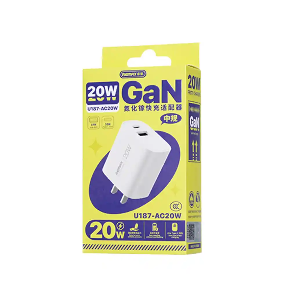 🚀 CARGA SEGURA Y ULTRA RÁPIDA (20W) No arriesgues tu batería con cargadores genéricos. El Remax U187 GaN es la solución profesional para tu iPhone o Android. * Tecnología GaN: Carga potente en un tamaño ligero que no recalienta tu equipo. * Dual Port: Carga 2 dispositivos a la vez (USB-C + USB-A). * Respaldo Técnico: Producto testeado y garantizado por nuestro laboratorio LagoCel Bogotá. * Ideal para: iPhone 12 al 16, Samsung Serie S y iPads. Incluye: 1 Cubo de carga Remax 20W (NO INCLUYE CABLE).