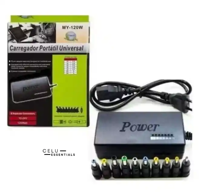 Cargador Portátil Universal: - 120 WATT - 12-24V - 8 tipos de conectores Cargador de portátil universal de 120 W compatible con la mayoría de los ordenadores portátiles Chromebooks Ultrabook. Plug and play, fácil de usar con ajuste automático de voltaje. Puede alimentar sus portátiles de diferentes marcas con un solo cable de alimentación portátil.