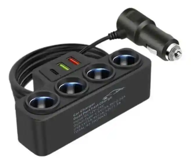 Cargador Cigarrera Encendedor Carro ¡Carga múltiples dispositivos y enciende cigarrillos en un solo accesorio! Con este cargador para carro puertos USB, Tipo C y encendedores, disfruta de máxima funcionalidad y comodidad en cada viaje. DESCRIPCION El cargador para automóvil con 2 puertos USB, 1 puerto Tipo C y 4 tomas de encendedor es la solución ideal para quienes necesitan cargar varios dispositivos y mantener la funcionalidad del encendedor del carro al mismo tiempo. Su diseño multifuncional permite conectar teléfonos, tablets, GPS y otros dispositivos mientras sigue proporcionando energía para encender cigarrillos o conectar accesorios de 12V como aspiradoras, infladores y más. Fabricado con materiales de alta calidad y equipado con protección contra sobrecargas, sobrecalentamiento y cortocircuitos, este adaptador garantiza un uso seguro y eficiente. Su diseño compacto y elegante encaja perfectamente en cualquier vehículo, proporcionando una carga rápida y estable sin ocupar demasiado espacio. CARACTERISTICAS - Cargador multifuncional con 2 puertos USB, 1 puerto Tipo C y 4 tomas de encendedor. - Carga rápida y eficiente compatible con múltiples dispositivos simultáneamente. - Protección inteligente contra sobrecargas, sobrecalentamiento y cortocircuitos. - Compatibilidad universal apto para automóviles, camiones y SUV con salida de 12V/24V. - Diseño compacto y portátil no ocupa espacio y mantiene el orden en el vehículo. - Indicador LED incorporado muestra el estado de carga y facilita su uso en la oscuridad. - Materiales resistentes y duraderos garantizan una larga vida útil del producto. - Uso versátil ideal para cargar teléfonos, tablets, GPS, cámaras y otros accesorios. - Conexión estable y segura evita interferencias en los dispositivos conectados. - Fácil instalación y uso solo conéctalo al encendedor del auto y estará listo para funcionar. MEDIDAS Largo: 12 cm Ancho: 10 cm Alto: 3.5 cm Peso: 165 g QUE INCLUYE LA COMPRA X1 Adaptador Encendedor