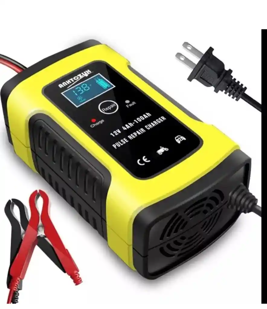* Apagado automático inteligente * Tester. Visualiza El estado actual de voltage * Visualiza el estado del alternador * Carga baterias de moto de 4amp. hasta automovil de 1000 amp * Refrigeración interna * Modo de escaneo y reparación * Práctico y fácil de llevar en moto o carro Control de microprocesador (CPU). Carga automática de 3 etapas: Este es un cargador de batería completamente automático con 3 etapas de carga. La carga automática protege tu batería de sobrecargar. Para que puedas dejar el cargador conectado a la batería indefinidamente. Los cargadores de 3 etapas son adecuados para la mayoría de los tipos de baterías, incluyendo calcio, Gel y AGM, baterías húmedas. También pueden ayudar a restaurar las baterías drenadas y sulfatadas. Tipos de baterías: La mayoría de los tipos de baterías de ácido de plomo incluyen calcio, GEL y AGM, húmedo, EFB, etc. Tecnología de modo de conmutación: Sí Protección de polaridad: Sí Protección corta de salida: Sí Protección sin conexión a la batería: Sí Protección contra sobretensión: Sí Protección contra sobretemperaturas: Sí • De refrigeración: Ventilador • Voltaje de entrada:100-240 VAC 50-60Hz Salida nominal: 12 V CC, 5-6 A máx. Voltaje de inicio mínimo: 8,0 V Rango de batería: 4-100Ah. Baterías hasta 1200amp Protección térmica: 65'C +/-5'C Eficiencia: aplicación. 85% • A normas: CB CE IEC60335... EN61000... EN55014 Dimensión (l w h): 150. × 85 × 60mm Peso: 380g