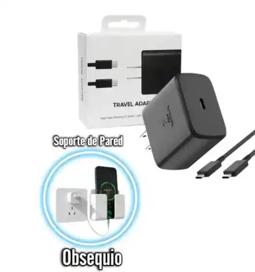 Cargador tipo Samsung Galaxy 45W Power Delivery Carga Especificaciones: Modelo: Cargador 45W Power Delivery Modelos: EP-TA845 Entrada: 100-240V Salida: 5V-3.0A =9V.3.0A=15V-3.0A=20V-2.25A Carga súper rápida | Este Cargador de Pared de Samsung con capacidad de carga superrápida de 45 vatios utiliza Power Delivery (PD) para proporcionar la carga más eficiente posible. Tenga para su dispositivo Celular Galaxy la fuente de alimentación estable y segura que se merecen. Bajo condiciones normales de uso,este cargador proporciona protección contra peligros como sobre corriente, cortos circuitos, fluctuaciones de temperatura y mucho mas."Lleva el tuyo ahora". Use el cable para sincronizar y transferir archivos a velocidades vertiginosas Pequeño en tamaño, grande en potencia. Se incluye un cable USB-C a USB-C desmontable Incluye: Cargador Samsung Carga Rápida Power Delivery 45W Cable Samsung USB Tipo C a USB Tipo C Manual Bolsa de seguridad y caja sellada