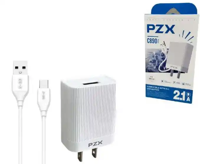 • Cargador Celular PZX • Tipo C • Cabezal + Cable • Compatible con Android • Entrada: AC100-240V/ 0.3A Salida: 2.4A MAX • Color: Blanco • Cable redondo • Regulador de energia