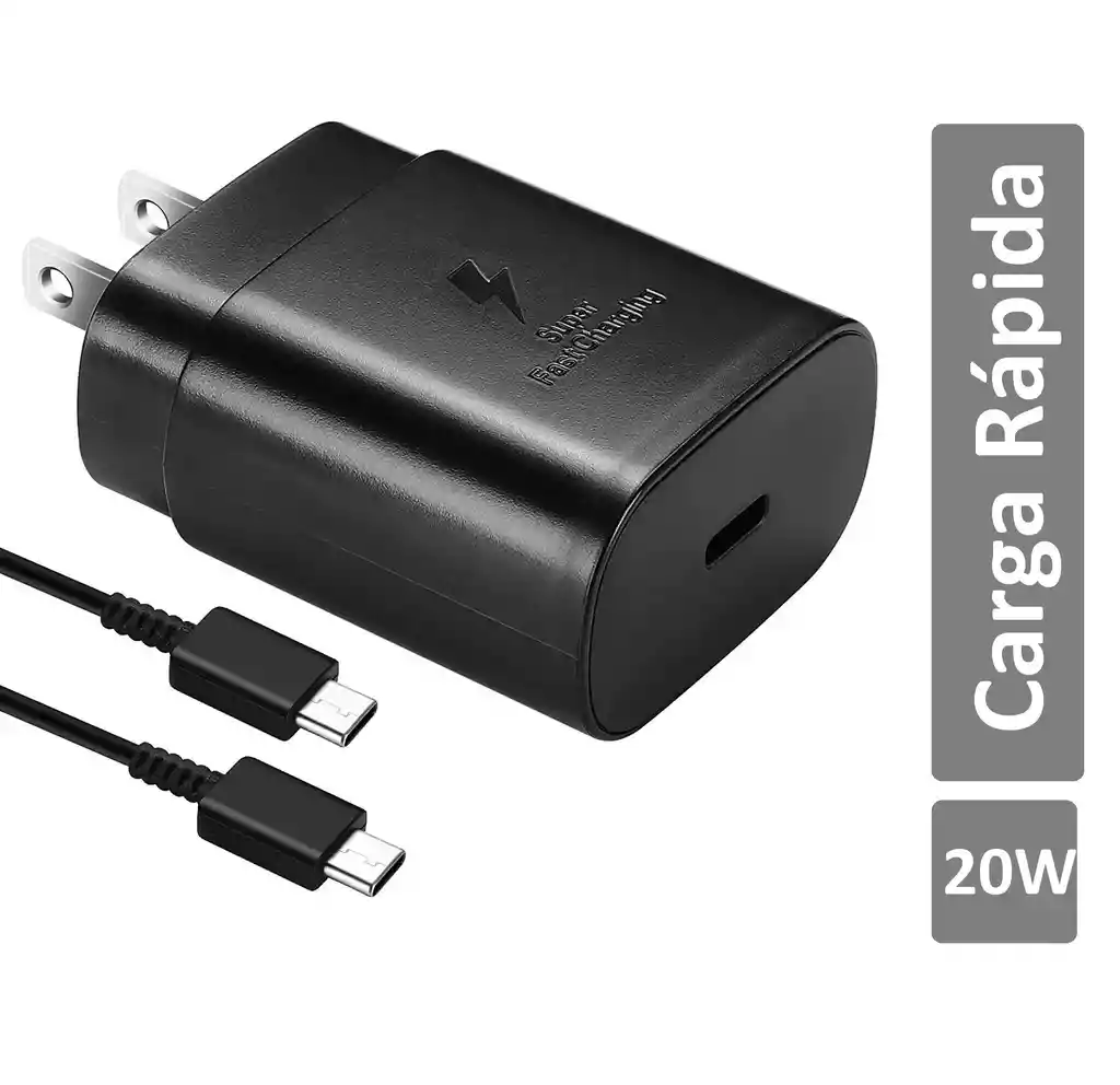 Cargador Tipo C Carga rápida 25W a tipo C ● Marca: Genérico ● Incluye: Cargador + cable de datos tipo c ● Potencia: 20 Watts ● INPUT: AC100-240V, 50-60Hz | TYPE-C OUTPOT :5V -5A 9V-3A| TOTAL POWER: 20W (MAX)