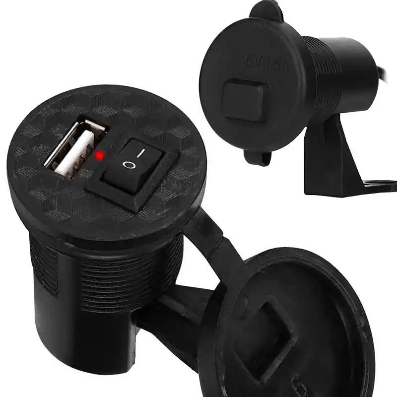 • Cargador Impermeable 1 puerto USB para motos • Entrada 12V – Salida 5V • Cargador 1 puerto USB desmontable para usar en otras motos o autos • 1 puerto USB de 2.1A • Se adapta directamente al manubrio sin modificaciones. • Fácil de instalar, le ofrece la solución perfecta para el uso del teléfono mientras conduce. • Trae un botón de encendido y apagado, muy conveniente para su uso. • Este cargador cuenta con un puerto USB que es perfecto para cargar tus dispositivos móviles como celulares, GPS, Mp4, entre otros. • El cargador incluye una tapa de goma para hacerlo resistente al agua y poder soportar fuertes lluvias sin sufrir daños. • Regulador de voltaje interno • Fusible de seguridad 1 AMP – 250V • Cable alimentador de 1.27 Cms de longitud. • Socket con tapa: largo 5.7 Cms, Ancho 2.6Cms, diámetro del cilindro 2.1 Cms • Compatible con la mayoría de motocicletas del Mercado • Fácil instalación, excelente funcionalidad y seguro • No sobrecarga l sistema eléctrico de la motocicleta • No requiere modificaciones de la motocicleta • El cargador USB fue diseñado pensando en proporcionar una fuente de apoyo eléctrica en tu motocicleta para teléfonos móviles, aun así, también es compatible para gran variedad de dispositivos CONTIENE: • Socket con tapa • Adaptador USB de 12V a 5V • Soporte tipo abrazadera para instalar en manubrios • 4 correas plásticas • Tornillo con su respectiva tuerca NOTA: En términos de color del elemento, puede ser ligeramente diferente de la pantalla y especificaciones que tenga cada monitor o dispositivo.