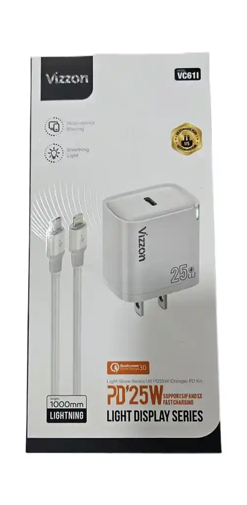Cargador Vizzon Tipo C A Lightning 25w