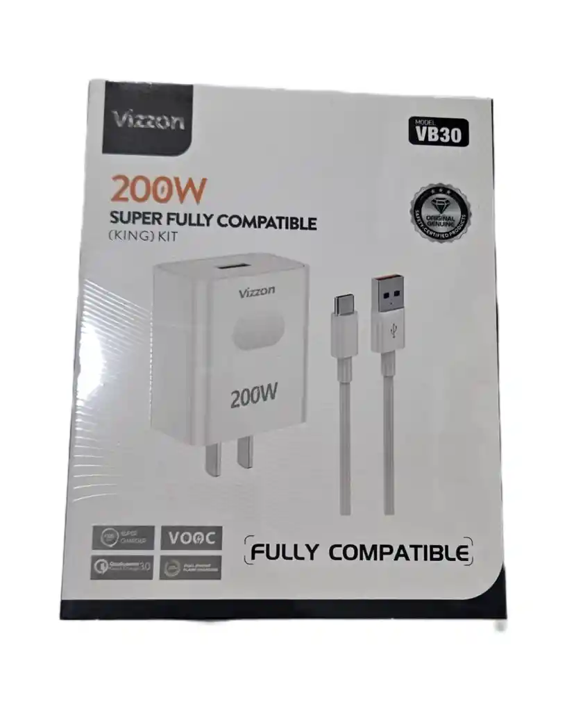 Cargador Vizzon Usb a Tipo C 200w Color: Blanco *Base Usb * Cable Usb a Tipo c *200w