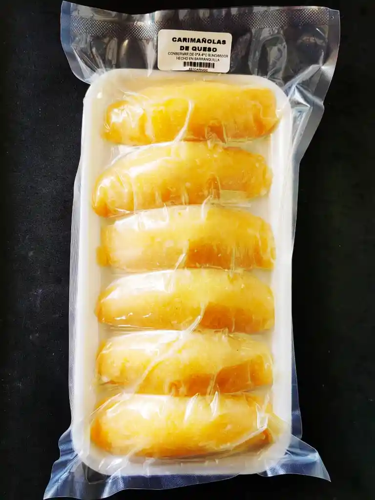 Bandeja de carimañolas a base de masa de yuca seleccionada, rellenas con queso costeño bajo en sal, contiene 6 unidades