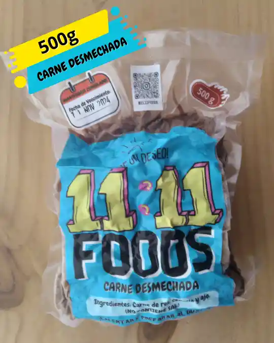 CARNE DESMECHADA 500g, CONGELADA Y EMPACADA AL VACIO, COCINADA CON CEBOLLA Y AJO, NO CONTIENE SAL, DESCONGELAR, CALENTAR Y CONDIMENTAR AL GUSTO!!!