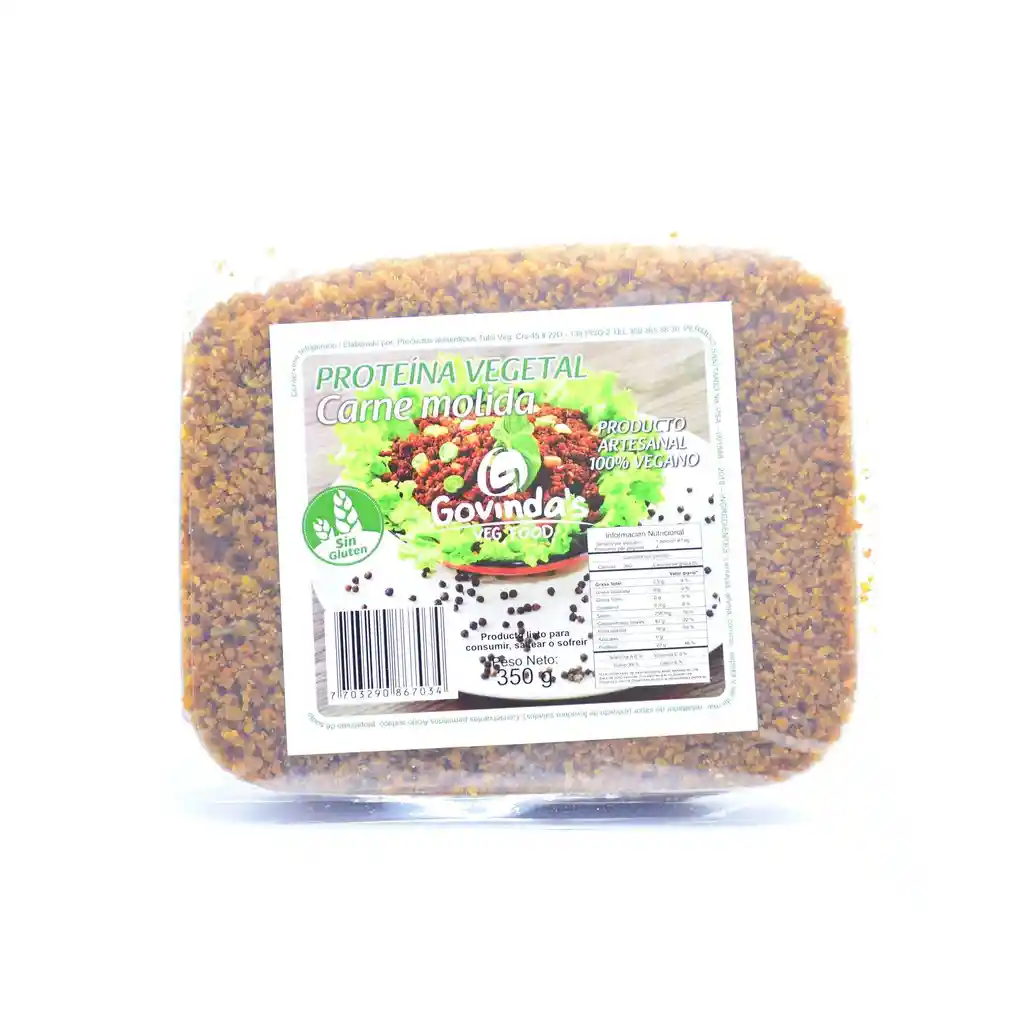 Carne molida 100% vegetal. Libre de gluten. Ingredientes: Lentejas, arveja, comino, paprika y sal de mar.