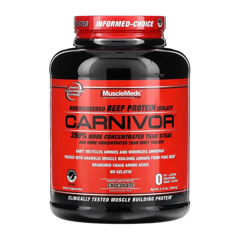 Proteína limpia a base de carne 4 lb. -56 servicios por envase / 23 g de proteína por servicio. -Se caracteriza por su rápida absorción y su bajo contenido de grasas y carbohidratos. Además de promover la saciedad, contribuye a la recuperación muscular, el crecimiento y la mejora del rendimiento físico. -Mezclar una cuchara (33 g) de producto en 250ml de agua. Carnivor Beef Protein Isolate 4 Lbs. -56 servings per container / 23 g of protein per serving. -It is characterized by its rapid absorption and low fat and carbohydrate content. In addition to promoting satiety, it contributes to muscle recovery, growth and improved physical performance. -Mix one scoop (33 g) of product in 250ml of water.