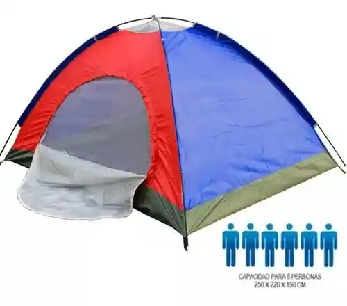 Carpa Camping Armable 6 Personas Amplia Comoda Multicolor Carpa Para 6 Personas En Hermosos Colores De 250 X 220 X 150cm. Carpa resistente al agua, de excelente precio-calidad y elaborada en poliéster de alta calidad, que harán de esta carpa un excelente acompañante en tus acampadas, cuenta con todos los accesorios para armar de forma rápida y fácil en cualquier lugar, adicional es muy compacta para llevar a cualquier parte y disfrutar de tus días de campo, tiene el espacio ideal para descansar y la ventilación adecuada para estar fresco en cualquier clima, provee firmeza en cualquier terreno que se ubique, es una herramienta muy útil en cualquier ocasión, así que no esperes más para comprarla y si tienes pensado en dar un regalo este seria muy ideal para aquellas personas que les gusta la aventura. NOTA: El color de la carpa puede variar un poco de acuerdo a la disponibilidad. Ideal: Para acampar. Usos: En todo clima menos nieve. Medidas: Alto 150 x Fondo 220 x Frente 250 cms. Peso: 2 kg. Estructura: reforzada y termo-sellada. Con: mosquitero. Cómoda y fácil de transportar en su tula de transporte.