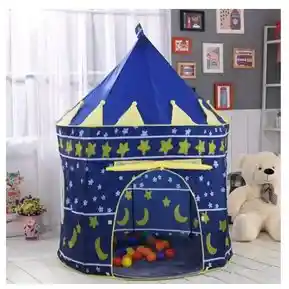 Azul MEDIDAS DEL ARTICULO 135 Alto X 105 cm de Diámetro. 1. Material Nilon 2. Carpa grande desarmable 3. Portatil 4. Plegable medida 48 cms 5. Viene totalmente cerrado con piso y ventanitas 6. Fácil de armar 7. Fácil de limpiar CONTENIDO DE SU COMPRA 1 Carpa castillo Varillas para soporte Estuche para transportar