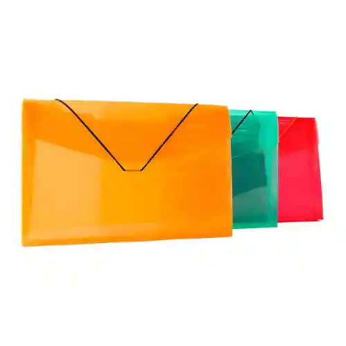 CARPETA PLASTICA TIPO FUELLE CON TAPA Y CIERRE DE CAUCHOS COLORES SURTIDOS