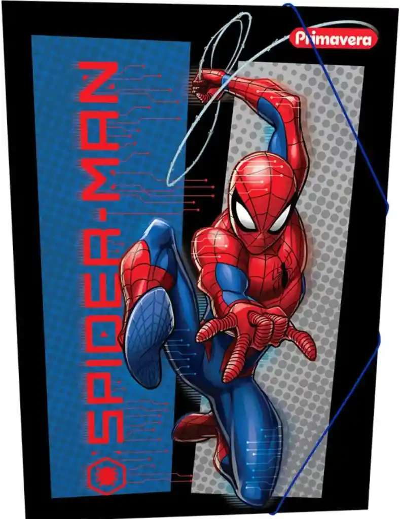 Fabricada en plástico resistente de 37 x 26 cm, esta carpeta tipo liga tiene impresión por ambas caras y un cordón elástico de color que mantiene los documentos organizados. Su acabado brillante resalta los detalles y colores de los personajes, convirtiéndola en una pieza llena de vida