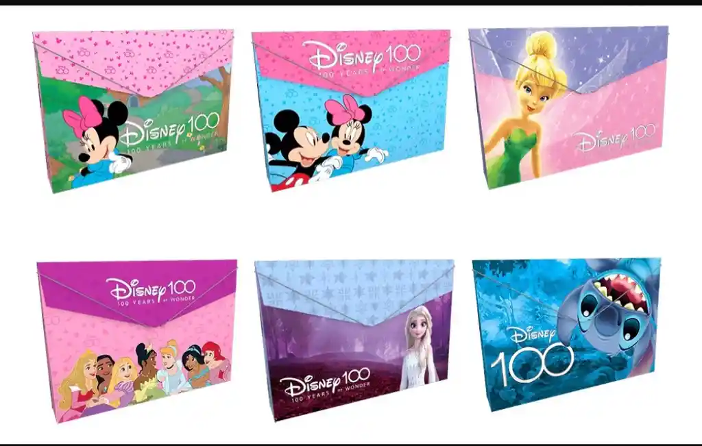 Fabricada en plástico resistente de 37 x 26 cm, esta carpeta tipo liga tiene impresión por ambas caras y un cordón elástico de color que mantiene los documentos organizados. Su acabado brillante resalta los detalles y colores de los personajes, convirtiéndola en una pieza llena de vida