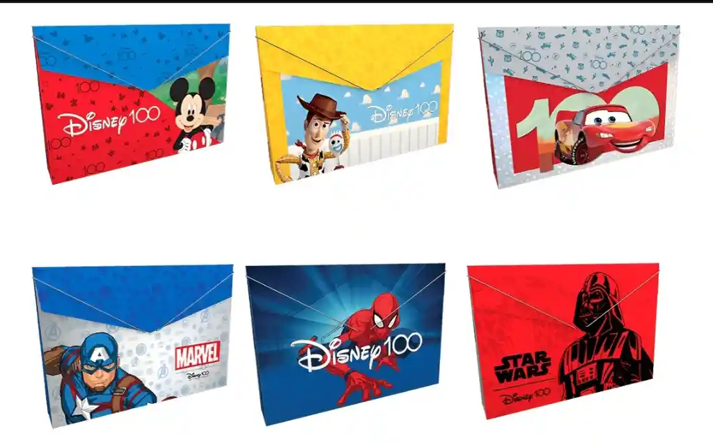 Fabricada en plástico resistente de 37 x 26 cm, esta carpeta tipo liga tiene impresión por ambas caras y un cordón elástico de color que mantiene los documentos organizados. Su acabado brillante resalta los detalles y colores de los personajes, convirtiéndola en una pieza llena de vida