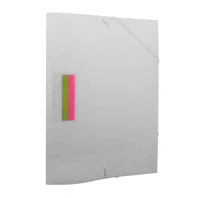 Carpeta de seguridad plástica texturizada traslucida con gancho anticorte, solapas para mayor seguridad diseñadas para archivar documentos verticales y horizontales, incluye dos rotuladores adhesivos, Dimensiones 25.2 × 0.5 × 37 cm
