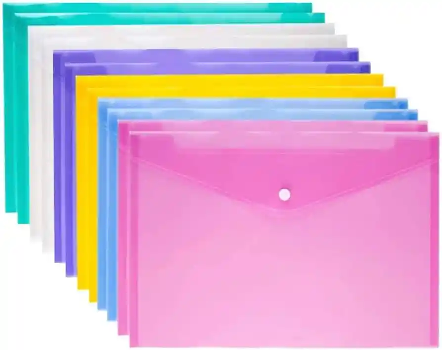 Carpeta Sobre Plastico De Boton, Tamaño Oficio, Horizontal - Colores Transparentes