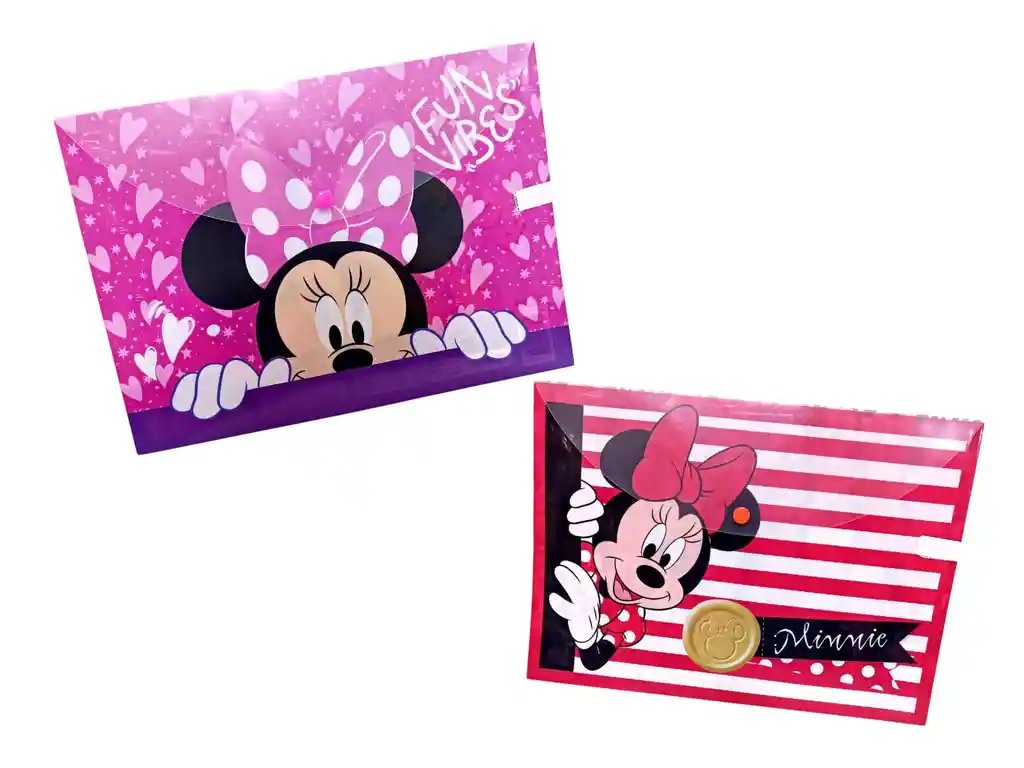 Carpeta Tipo Sobre, con Broche de Seguridad, Tamaño Carta. Motivos de Minnie, se Envia Motivos de Forma Aleatoria Segun Disponibilidad de la Tienda.