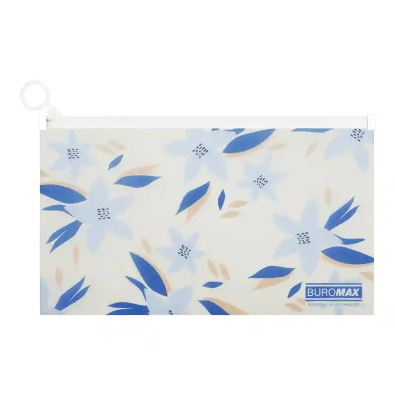 Carpeta tipo Bolsillo tamaño Carta, con cremallera de seguridad plástica, motivo flores.