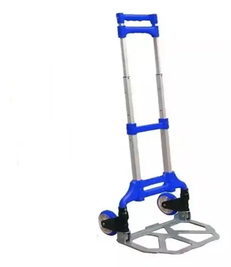 CARACTERISTICAS: * Carretilla de diseño ultra delgado, elaborada en materiales de primera calidad. * Ruedas Super Resistentes. * Material en Aluminio. * Peso lijero. * Excelente capacidad de carga. * Diseño: Expandible en tres alturas: 64 cm, 80 cm y 100 cm * Capacidad máxima de carga: 80 kgs. DESCRIPCION: - Carreta plegable multifunción, una solución para sus necesidades en el manejo de equipaje. El CARRO PLEGABLE MULTIFUNCIÓN está hecho de aluminio de alta calidad y plásticos de grado industrial para un manejo liviano y durable. - Es muy simple de usar y una gran pieza de equipo para tener en casa o cuando salga de compras o de gira. Resulta muy útil en un taller, almacén, oficina o lugares comerciales. Es realmente práctico y se pliega completamente para facilitar su almacenamiento y transporte. ESPECIFICACIONES: * Material: Alta resistencia (Aluminio Plástico de alta dureza). * Diseño: Expandible en tres alturas: 64 cm, 80 cm y 100 cm * Capacidad máxima de carga: 80 kgs * Tamaño: Base en aluminio de diámetro 27 cm X 39 cm. * Ruedas: Recubiertas en goma de 13 cm de Diámetro y 3 Cm de Grosor. * Banda Elástica (Pulpo) para amarre de carga Color sujeto a disponibilidad (Azul, Rojo)