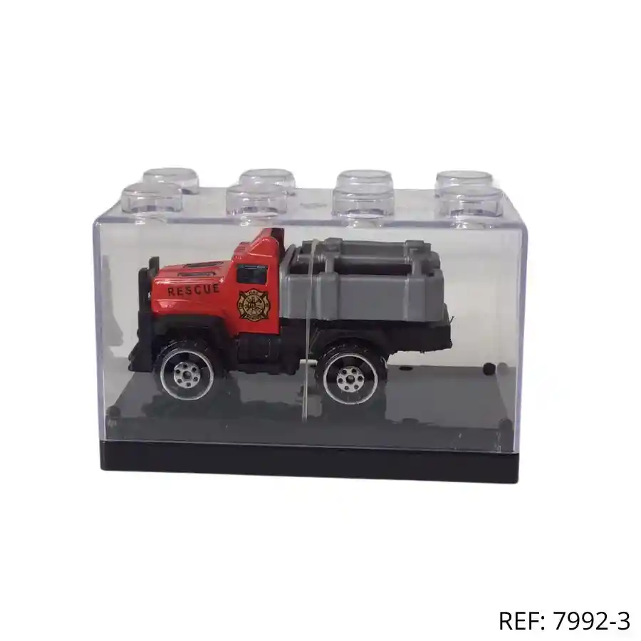 Camión de rescate metálico en estuche tipo bloque. ¡Ideal para coleccionar y crear aventuras de emergencia!